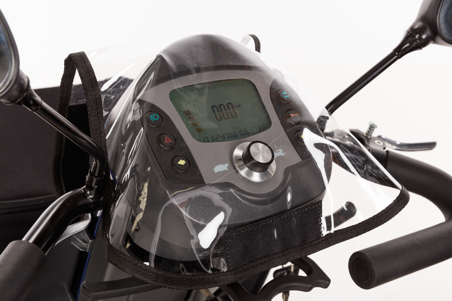 The Console Cover has been carefully designed to protect the console of a large range of scooters from the strongest of downpours. It is transparent allowing the scooter rider to maintain a visual with the display panel. The material is also flexible enough that buttons can still be pushed and dials can still be turned if required. If the scooter rider has limited hand movement and has trouble using the dials through the Console Cover, they can simply unhitch the velcro giving them full access to make adjustments and then simply replace it again.