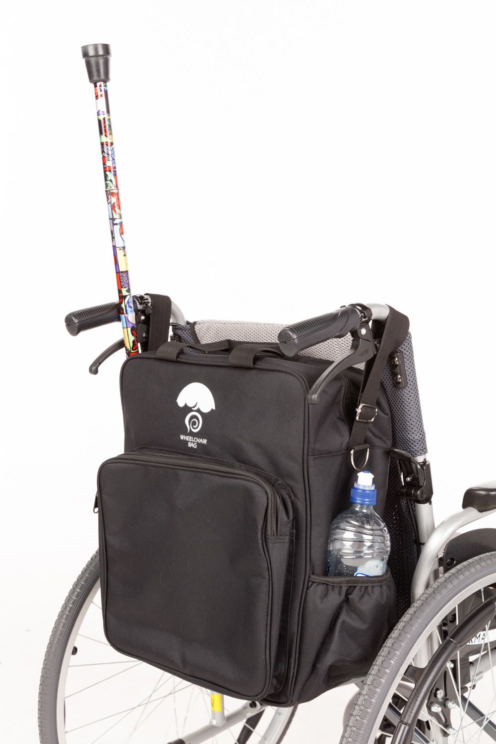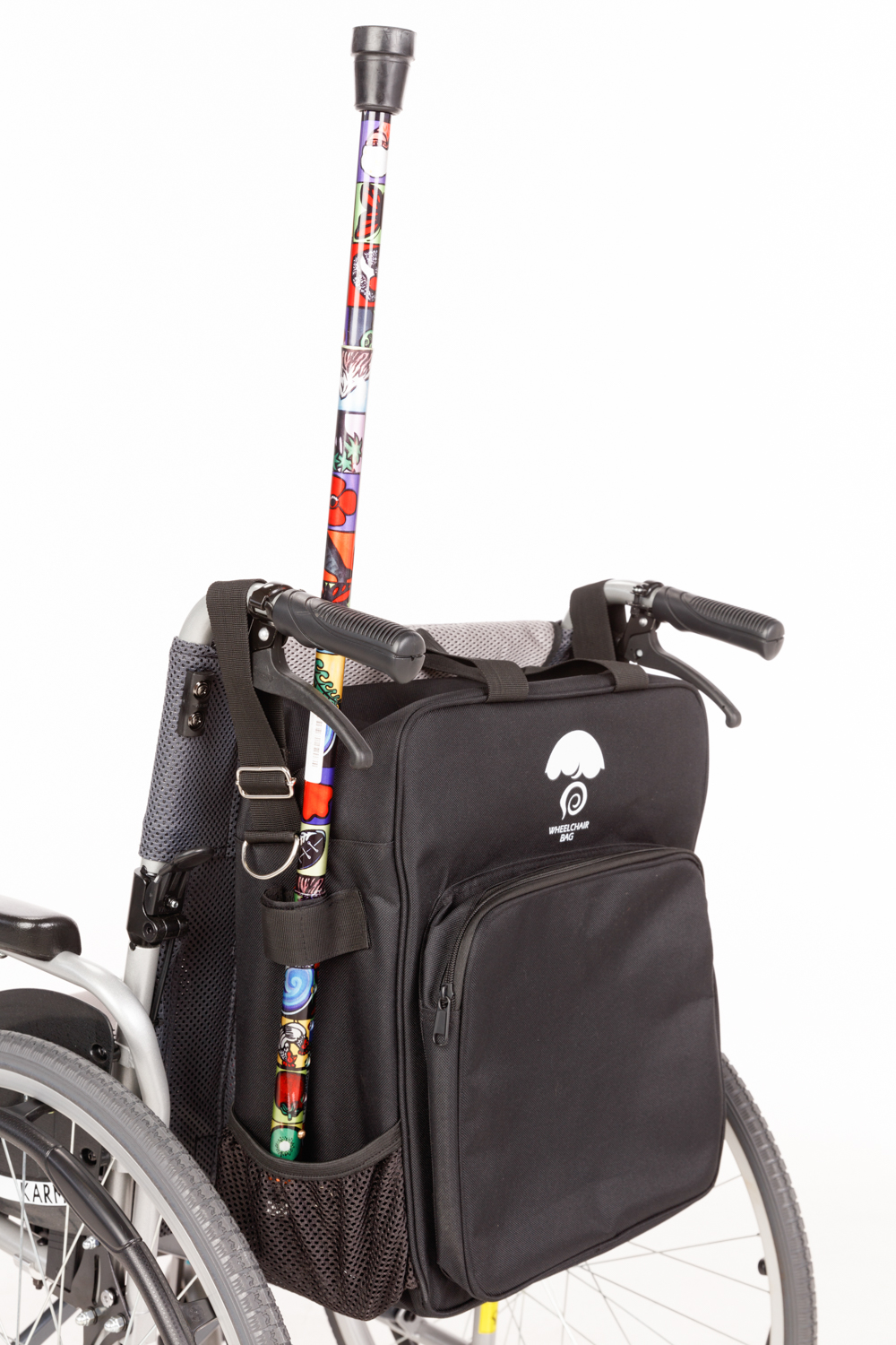 Made out of heavy duty Oxford nylon, the Wheelchair Bag is strong and sturdy. The bag has 2 strong straps to fit over the wheelchair’s push handles that are adjustable to fit most sized wheelchairs. Contains two compartments, one large and one small . The Wheelchair Bag also has two strong carry handles as well as a shoulder strap for ease of carrying, a lined drink holder and a small net bag that can double as a walking stick holder. Can easily be detached to carry over shoulder.
