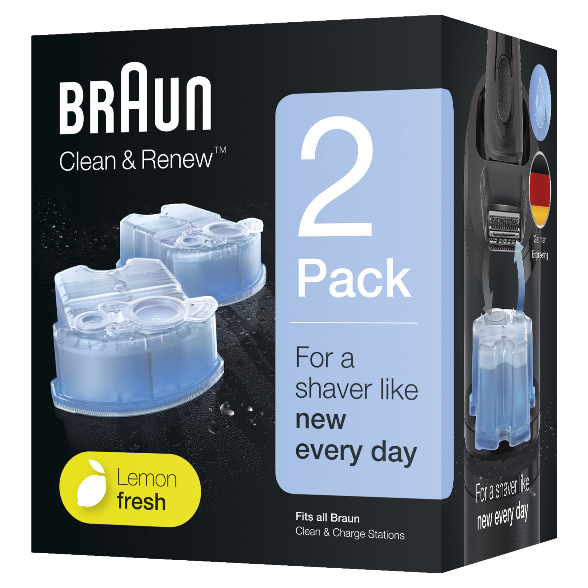 Braun Clean & Charge cartridges hold cleaning fluid for Braun’s clean & charge stand with each cartridge lasting about 30 cleaning cycles. The cartridge installs quickly and easily, while the fluid cleans and lubricates the razor automatically and beard stubble cleaned from the razor is stored inside for no mess.