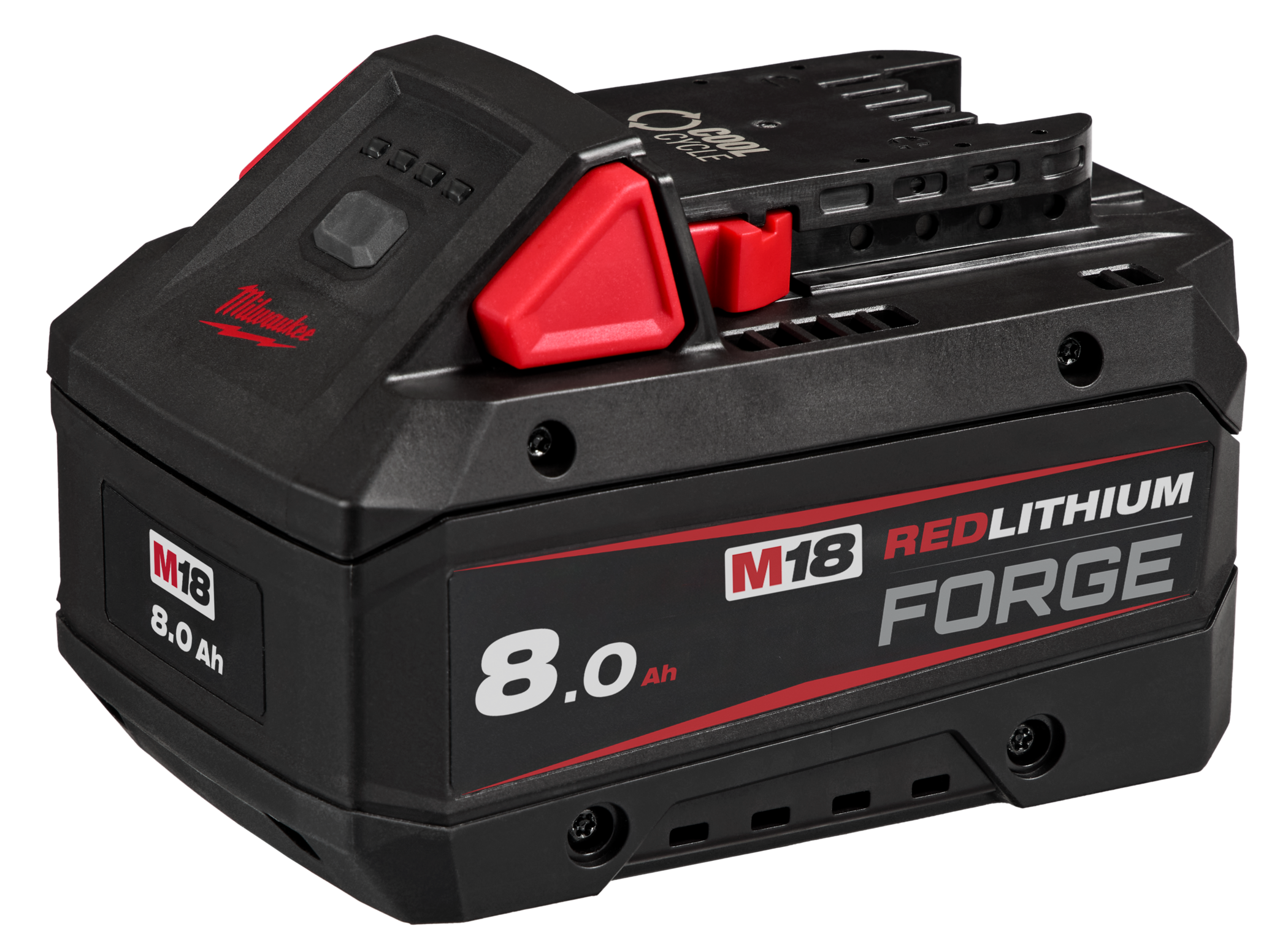 The M18™ REDLITHIUM™ FORGE™ 8.0Ah Battery is COOL-CYCLE capable with this Active Cooling System providing high-speed cooling for maximising efficiency for less downtime. An upgraded venting design maximises active cooling, while a patented ingress coating provides a protection barrier against water and debris.