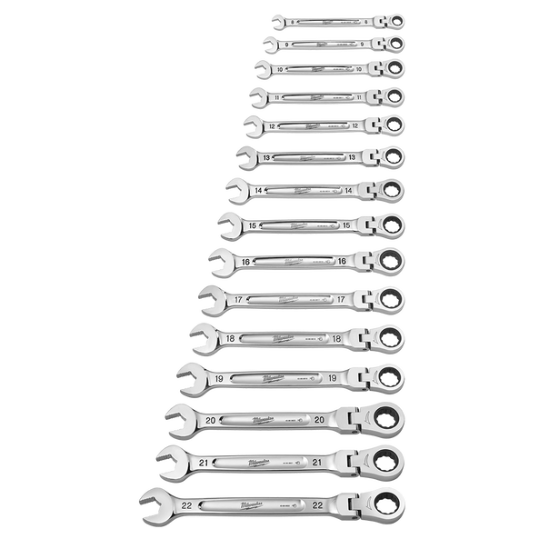 Milwaukee 15pc Flex Head Ratcheting Combination Wrench Set – Metric