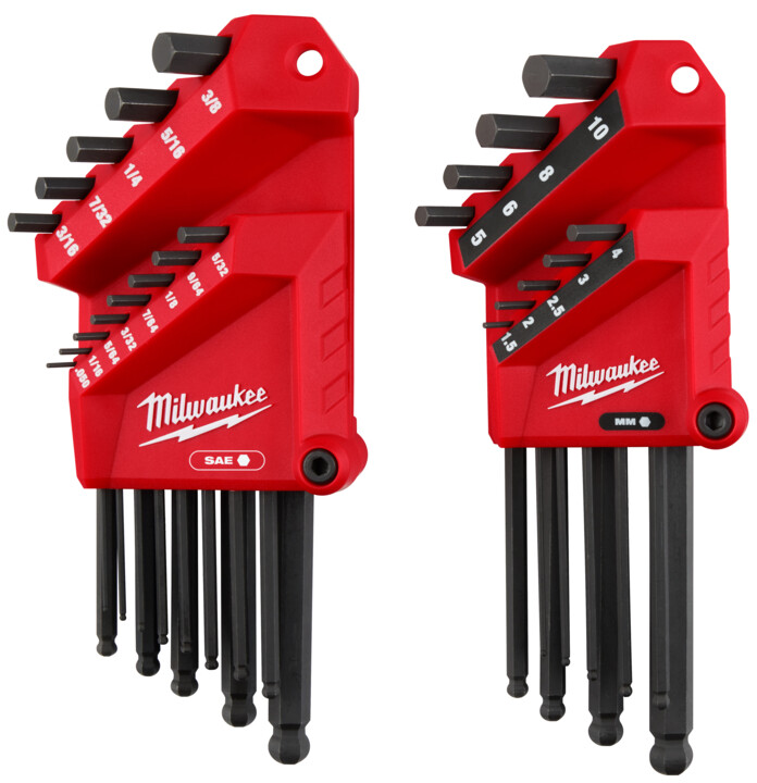 The allen keys withstand more torque and extend the life of the tool in the toughest jobsite conditions. The holder and keys have long-lasting, high-contrast markings for quick size identification. With a ball end, the keys are able to easily access fasteners even when at a difficult angle. The pivoting holder with a hang hole makes transportation and storage simple. The Milwaukee® 2PC Kit L-Style Hex Key Set with Ball Ends is backed by our Limited Lifetime Warranty.