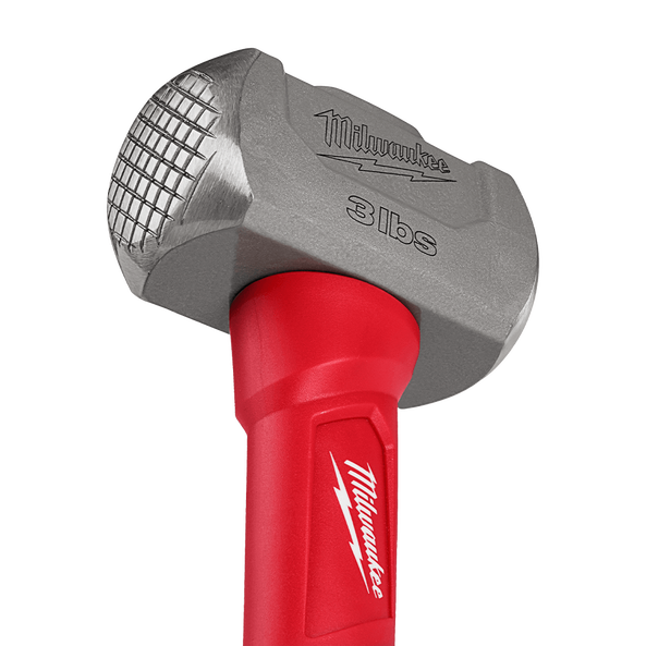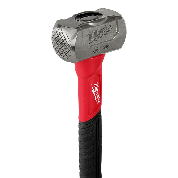 Our 3lb Drilling Hammer features one milled and one smooth faced for unmatched versatility on jobsites. The milled face grips chisels, punches, stakes, and spikes to reduce slippage or misstrikes, while the smooth face can be utilised for a wide range of striking applications. The drilling hammer is designed with a high strength fiberglass handle and reinforced overstrike protection to offer ultimate power and durability. It is also precision balanced for ease of use and provides forceful blows with less effort.