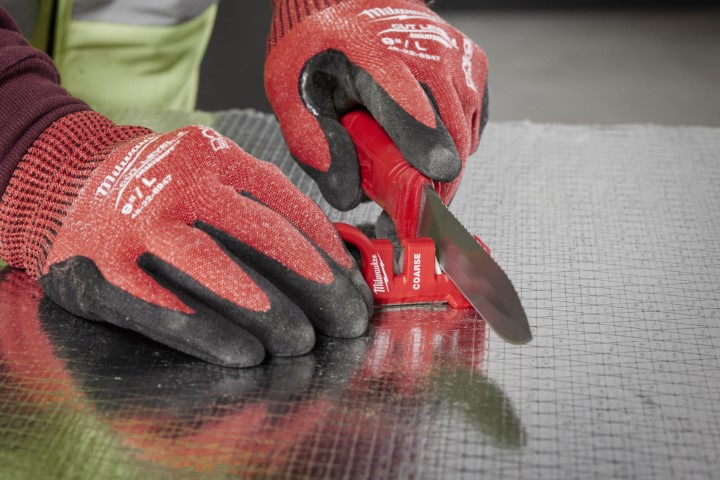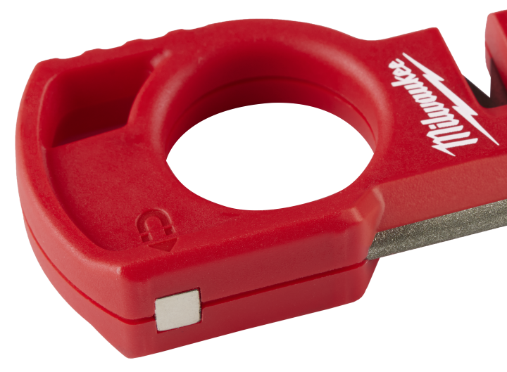 It also offers a large finger loop for a secure grip and added control while sharpening. The compact size means it easy fits into pockets and tool belts or bags and has a magnet for easy, convenient storage on the jobsite.