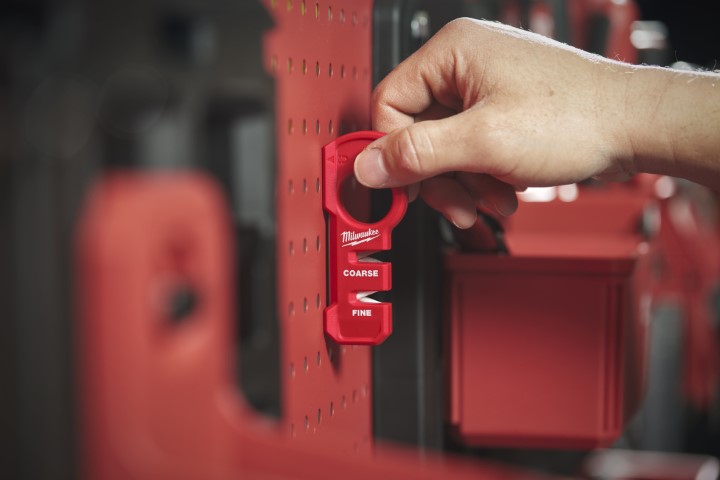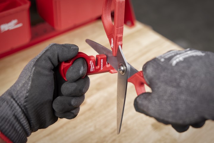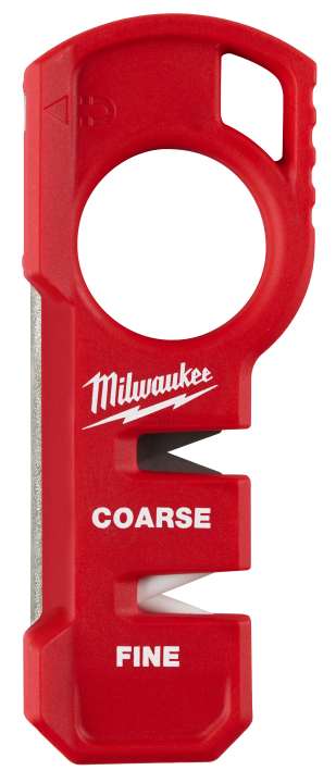 The MILWAUKEE® compact knife sharpener features three sharpening surfaces compatible with most knives; coarse carbide for quick edge setting, a fine ceramic to finish the sharpened edge and a diamond grit for freestyle specialty blade sharpening.