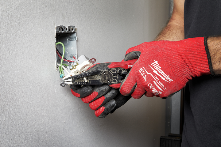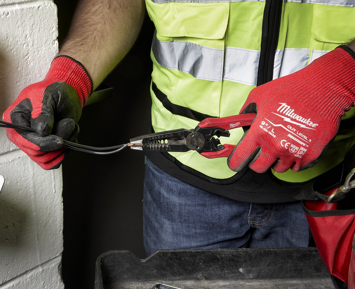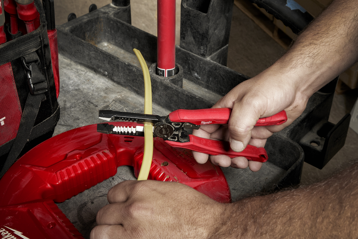 Our 7-in-1 High-Leverage Combination Pliers feature seven core functions for use in a variety of applications. With longer handles providing extra leverage, cutting cable is as easy as ever, while the wide jaws provide maximum control when grabbing and twisting cable. With an on-board, crimper, stripper and loop maker allowing quick wire preparation, the built-in reamer allows you to ream ½” through 1” conduit, and the bolt cutter cuts #6 and #8 bolts. A swing-lock design also delivers fast, one-handed operation. The MILWAUKEE® 7-in-1 high-leverage combination pliers provide maximum productivity and are perfect for the toughest jobsites.