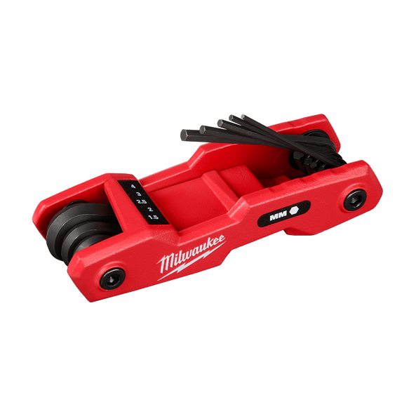 The Milwaukee 8-Key Metric Folding Hex Key Set/Allen Key features one of the easiest key access on the market. The access zones on the handle and a key shelf to elevate the keys make it quicker to grab the needed key. The handle has long-lasting, high-contrast markings to help identify the correct sized key for the job. The full metal body construction withstands high torque and extends the life of the tool in the toughest jobsite conditions, while the shape of the handle is optimised for comfort. The keys rotate 270° for greater access and torque in tight spaces. The convenient folding hex wrench set makes transportation and storage simple. The Milwaukee 8-Key Metric Folding Hex Key Set is backed by our Limited Lifetime Warranty.
