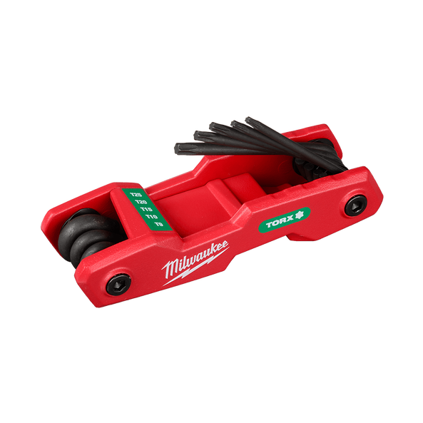 The Milwaukee 8-Key Torx Folding Hex Key Set/Allen Key features one of the easiest key access on the market. The access zones on the handle and a key shelf to elevate the keys make it quicker to grab the needed key. The handle has long-lasting, high-contrast markings to help identify the correct sized key for the job. The full metal body construction withstands high torque and extends the life of the tool in the toughest jobsite conditions, while the shape of the handle is optimised for comfort. The keys rotate 270° for greater access and torque in tight spaces. The convenient folding hex wrench set makes transportation and storage simple. The Milwaukee 8 K-Key Torx Hex Key Set is backed by our Limited Lifetime Warranty.