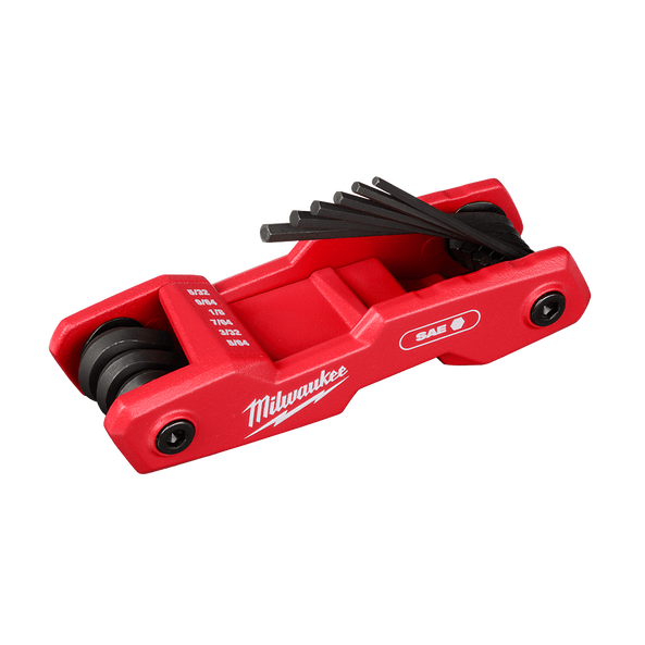 The Milwaukee 9-Key SAE Folding Hex Key Set/ Allen Key features one of the easiest key access on the market. The access zones on the handle and a key shelf to elevate the keys make it quicker to grab the needed key. The handle has long-lasting, high-contrast markings to help identify the correct sized key for the job. The full metal body construction withstands high torque and extends the life of the tool in the toughest jobsite conditions, while the shape of the handle is optimised for comfort. The keys rotate 270° for greater access and torque in tight spaces. The convenient folding hex wrench set makes transportation and storage simple. The Milwaukee 9-Key SAE Folding Hex Key Set is backed by our Limited Lifetime Warranty.