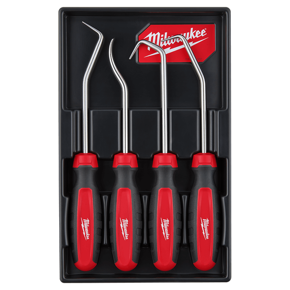 Our Hose Pick 4pc Set feature an all-metal core for up to more durability. Each pick has a specific angle for different applications whilst the reinforced tip resists bending when loosening stubborn hoses. The flat pick provides puncture protection and reduces damage to hoses. Our Comfort grip handles gives the user increased tool control and comfort. This set features a hook, 90°, 45°, and flat hose pick along with a durable long-term storage tray for easy access and organisation. These chrome-plated picks provide superior rust protection.