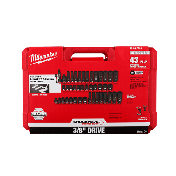 Milwaukee Shockwave™ 3/8" Drive 43pc Sae & Metric 6 Point Impact Socket Set