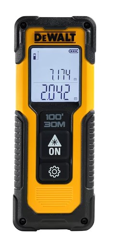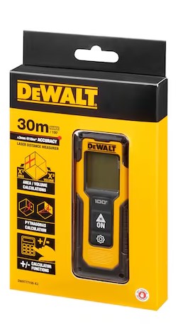 The DWHT77100 is a guaranteed tough laser distance measure with a working range of 30 metres.The unit is accurate to within 3 metres at 10 metres and features area, volume and Pythagoras calculations as well as metric and imperial for a wide range of applications. The two button operation makes this LDM quick and easy to use and the rubber overmould makes it jobsite tough.