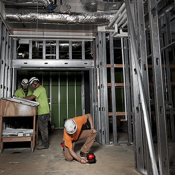 The high-intensity laser beams allow the green points to be visible up to 45 meters for fast, accurate point transfer.