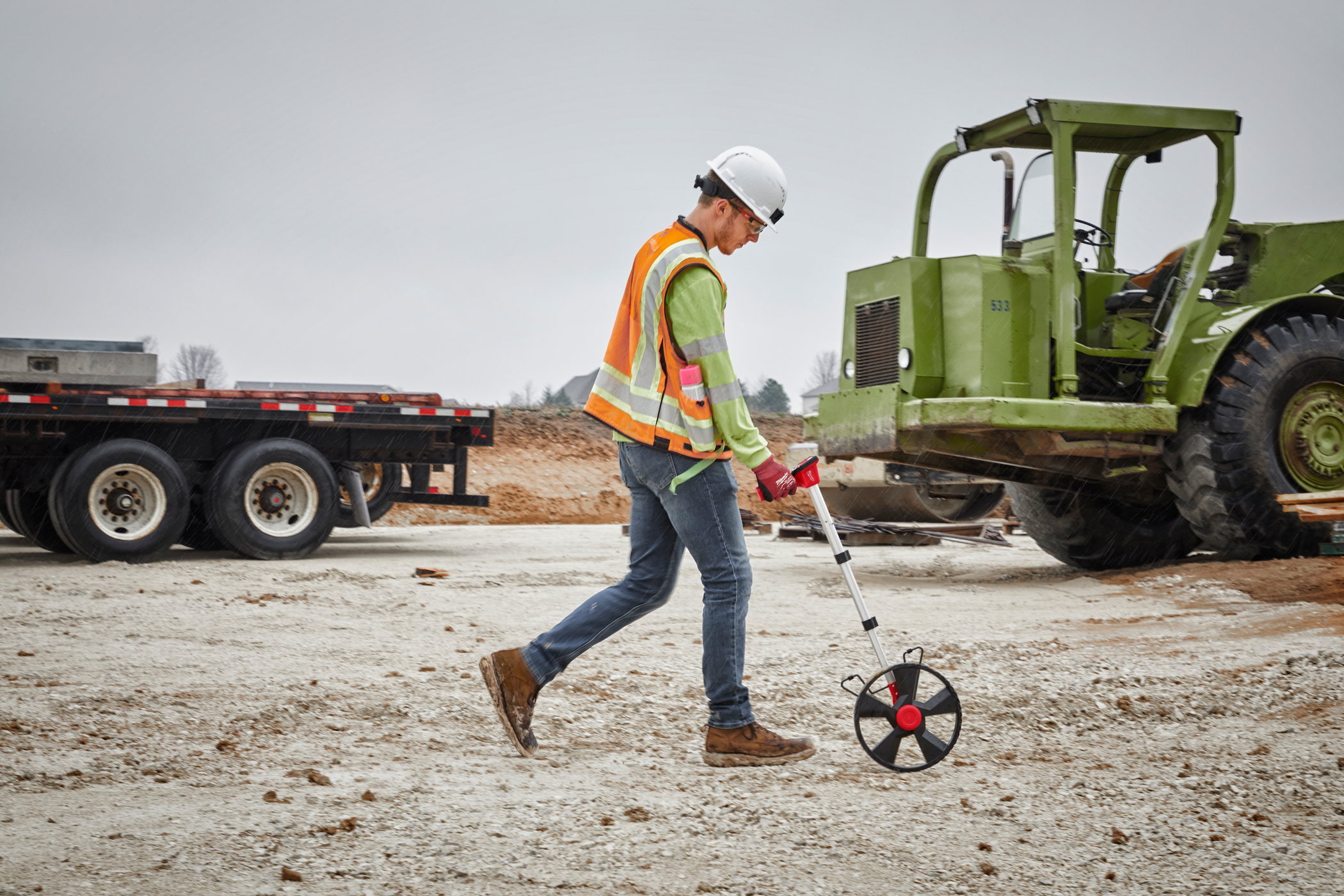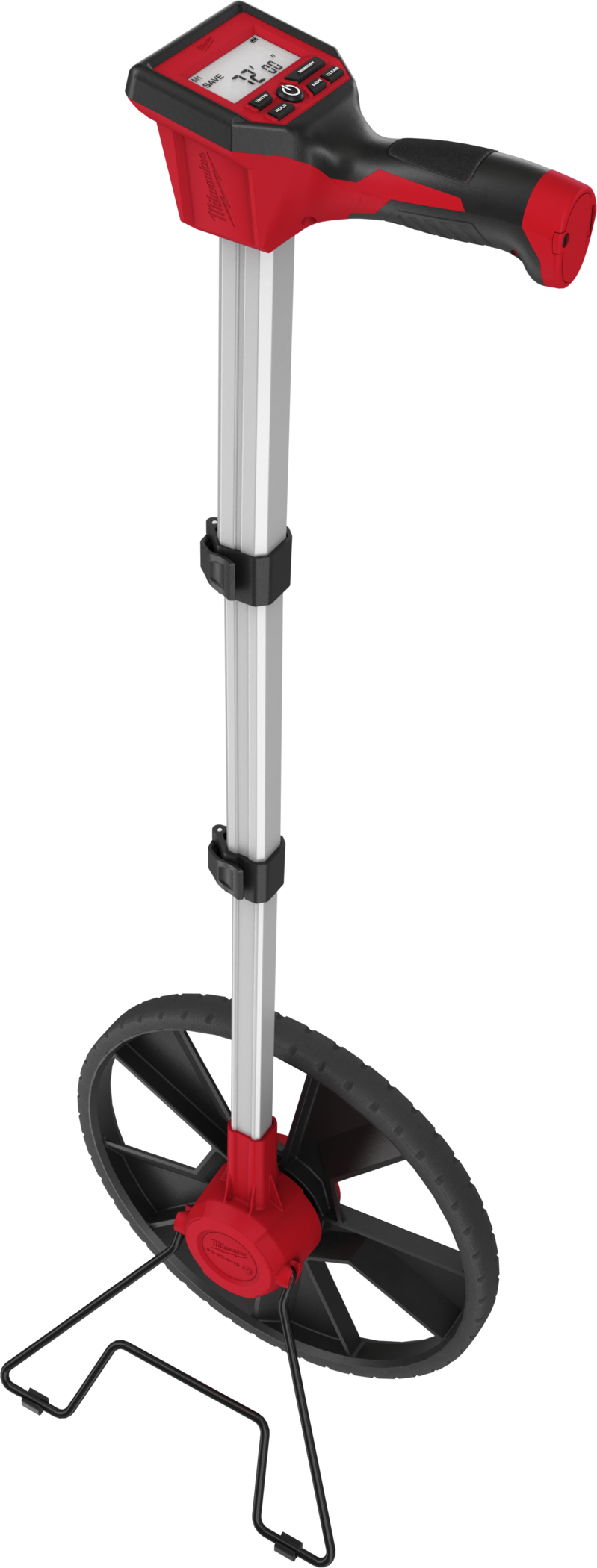 Our 305mm Digital Measuring Wheel has been designed with efficiency and convenience in mind, giving you the ability to control the tool with one-hand using the handle-mounted buttons and digital display. The backlit screen has an IP54 rating for durability and features a highly intuitive interface. The digital interface allows you to save and store up to four measurements, measure and convert in Metric, Imperial and Engineer Scales, as well as hold and clear measurements with just the touch of a button. The frame telescopes to multiple heights and is easy to store. This MILWAUKEE® Digital Measuring Wheel takes 2 AAA batteries (included).