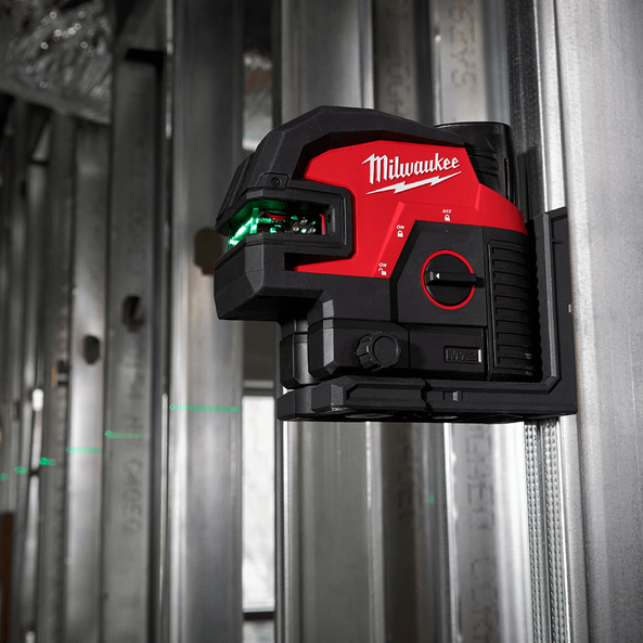 Our M12™ Green Cross Line & 4-Points Laser provides all-day runtime and the best visibility in its class. Using our M12™ REDLITHIUM™-ION 3.0Ah Compact Battery (M12B3 sold separately), users get 9+ hours of continuous runtime for ultimate productivity. The high-intensity green laser offers our users superior visibility up to 38 Meters for long-range applications. The vertical and horizontal lines make alignment and level applications easy for our users, while the additional 4-points allow for quick transfers from floor to ceiling and squaring applications. The integrated magnetic bracket features micro-control and pivots on the plumb point for easy and fast alignment. The amplified rare earth magnets provide a stronghold and will not slide on steel studs, while an integrated hang hole makes setup easy and efficient in any environment. As part of the industry-leading M12™ System, our laser is compatible with all M12™ Batteries.