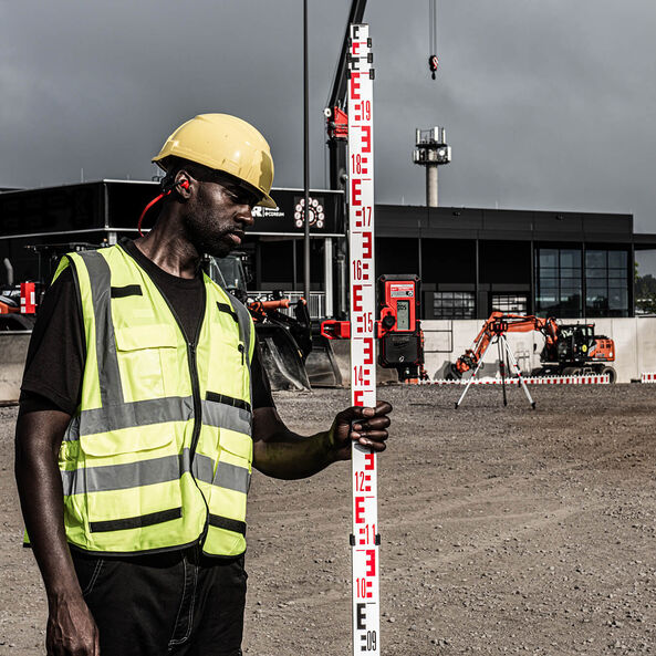 The Rotary Grade Rod 5m designed to provide precise measurements when used with a laser line level. Made from aluminium, it features measurements in millimetres and E graduations. It can be retracted for easy carrying and storage.