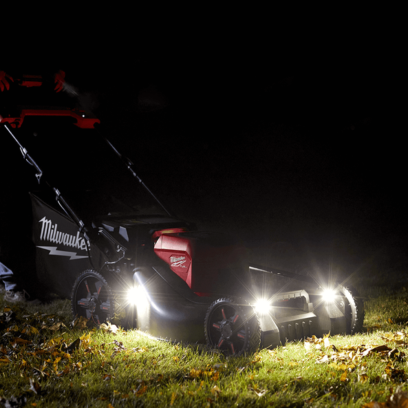 The M18 FUEL™ 21" (533mm) Self-Propelled Dual Battery Lawn Mower features a steel deck, 3-in-1 grass management, single point height adjustment, front & side LED lights, vertical storage, two deck handles, and high lift mode, which allows the mower to tackle the most demanding applications. Equipped with a 21" (533mm) Mower Blade (49162734), the mower provides a true 21" (533mm) cut capacity, reducing missed blades of grass and clumping.
