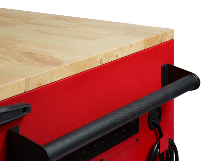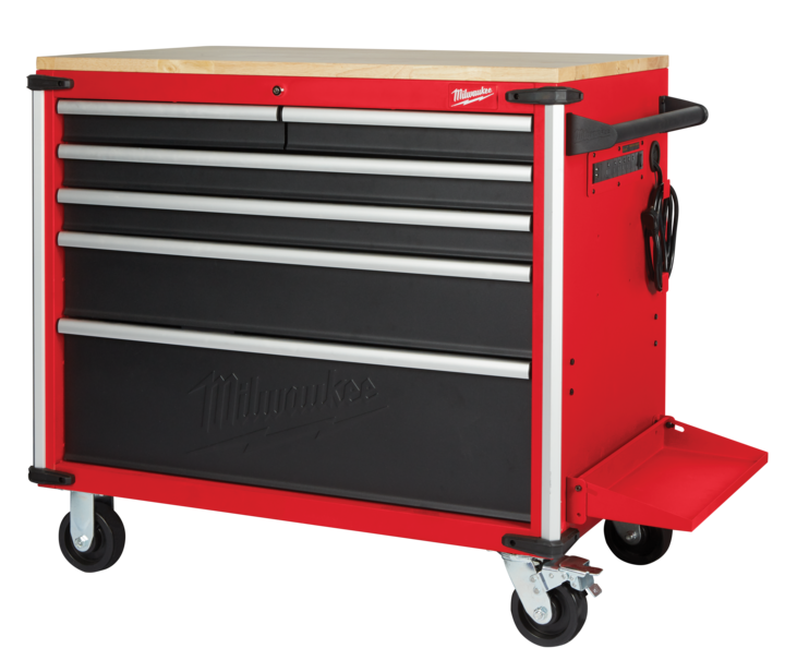 The 40” Wood Top Work Bench is the most durable and best equipped steel storage solution in its class. Featuring a reinforced angle iron frame, 45kg soft close drawer slides, and 5” industrial casters, the Milwaukee steel storage cabinet has a built-in power center consisting of 4 power outlets and 2 USB outlets. The 6-drawer wood top work bench is designed with a variety of innovative features such as a side shelf, cable hooks and built in organiser. Featuring a wooden work surface to maximise your space and productivity.