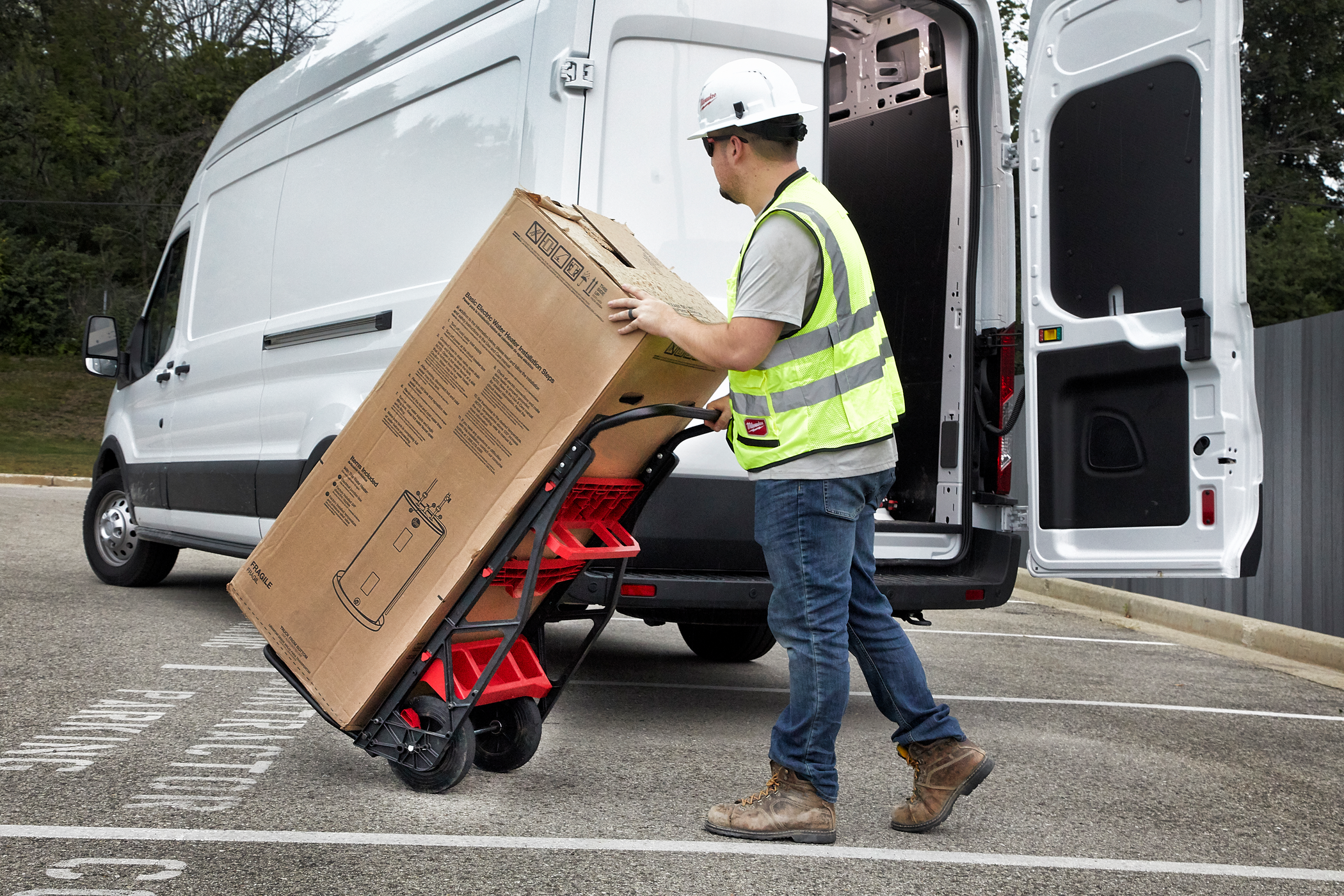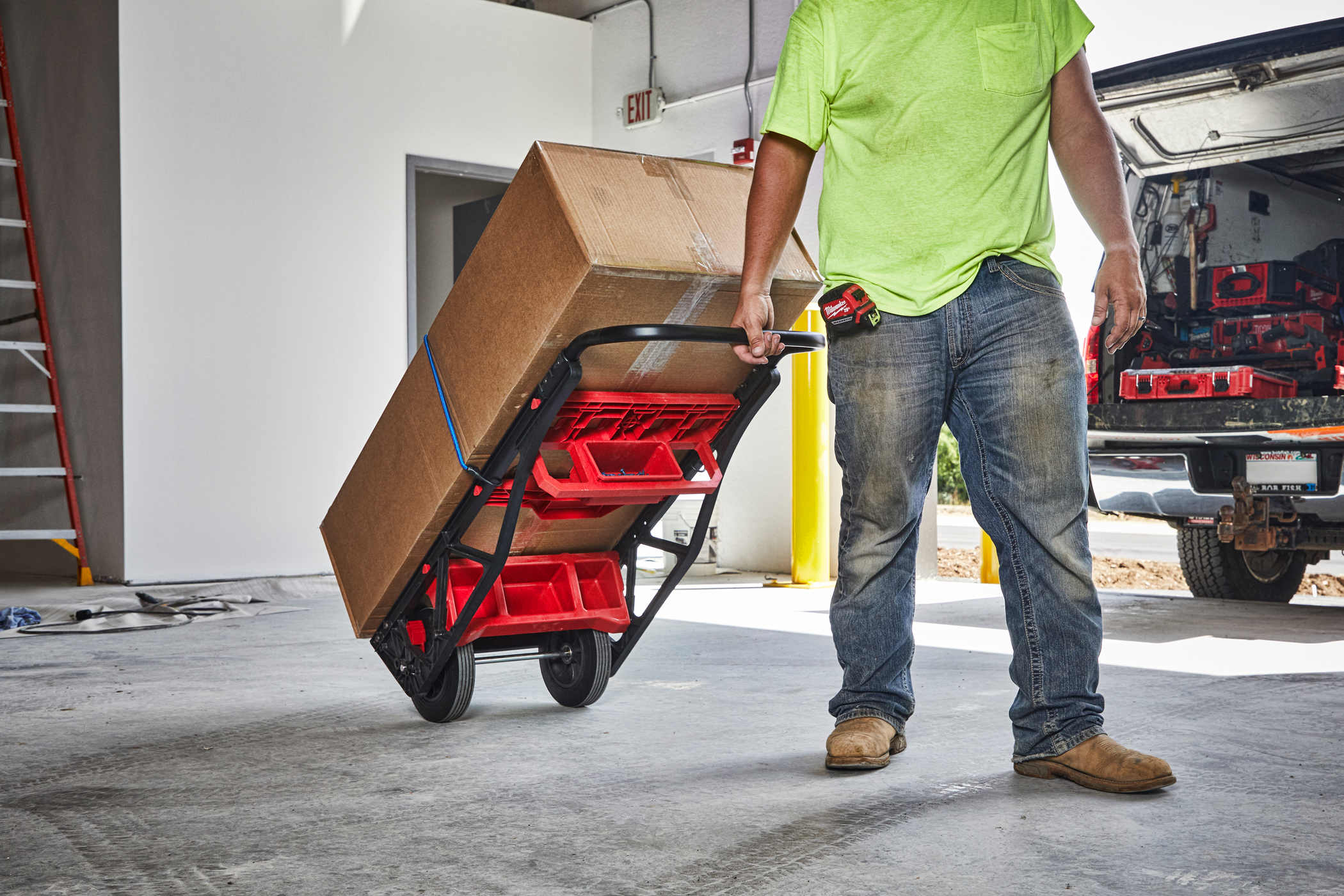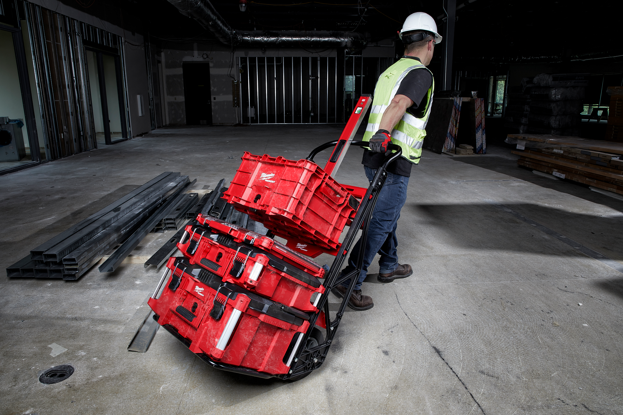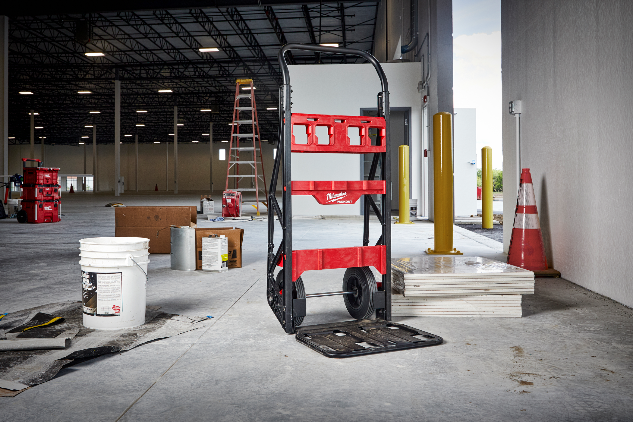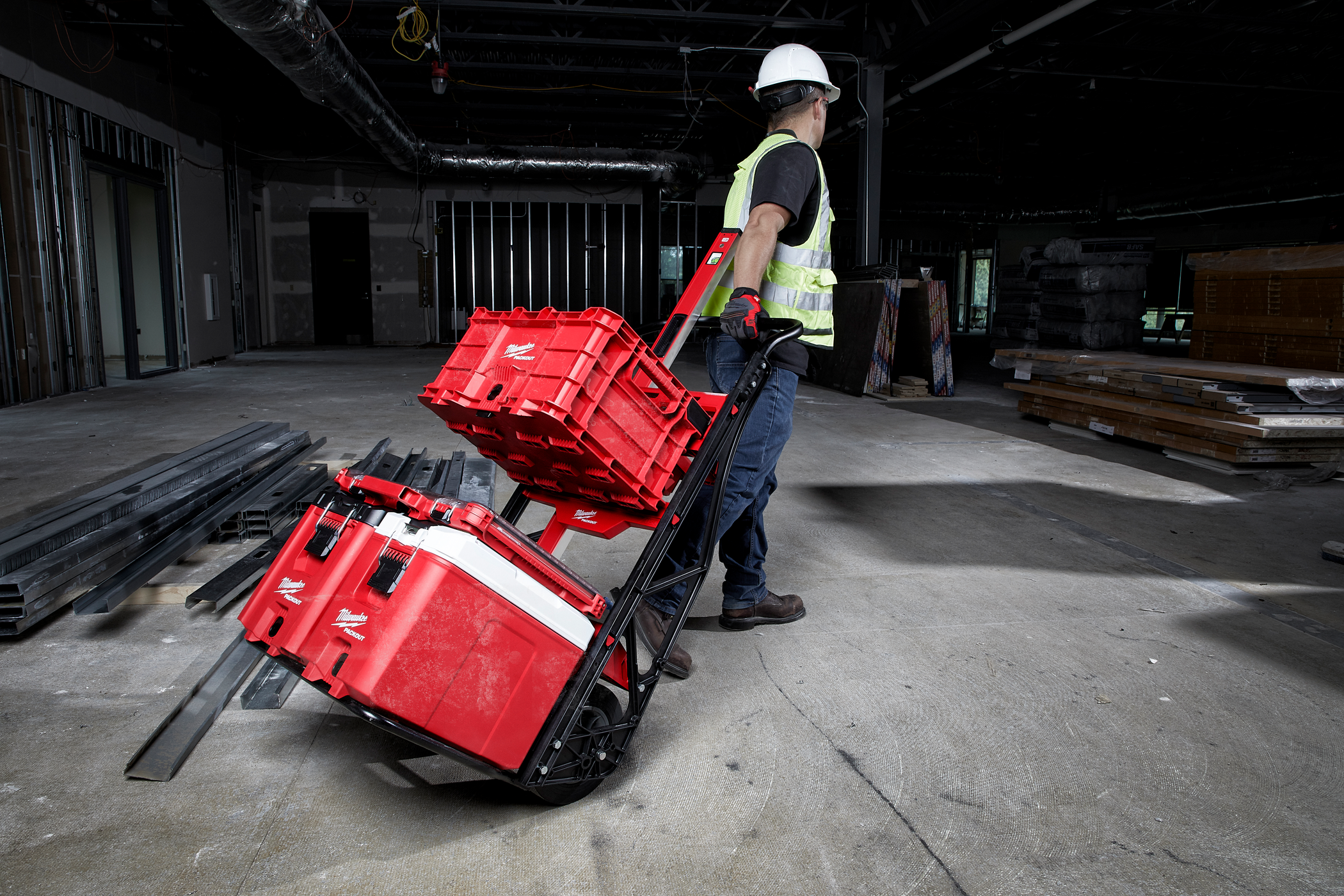 This MILWAUKEE® PACKOUT™ rolling cart easily transfers on and off the jobsite with a 181kgs of weight capacity and 10" industrial wheels.
