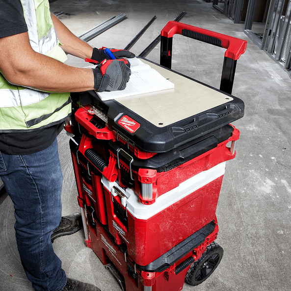 This PACKOUT™ Customisable Work Top is constructed with impact-resistant polymers and ½” marine grade wood top that provides you with a durable, portable work surface for assembly and writing tasks.