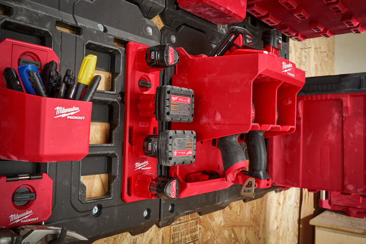 Fully customise your workshop, garage or vehicle with the PACKOUT™ M12 Battery Rack.