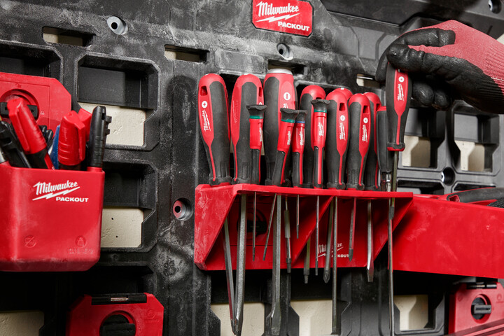 Our PACKOUT™ Screwdriver Rack delivers the most secure mounting when paired with PACKOUT™ Wall Plates. The Screwdriver Rack features 34 multi-size slots and allows you to store various sizes and shapes of screwdrivers. The Screwdriver Rack provides a 9.07kg weight capacity. Additionally, our Screwdriver Rack features connectivity with PACKOUT™ solutions allowing you to fully customise your shop.