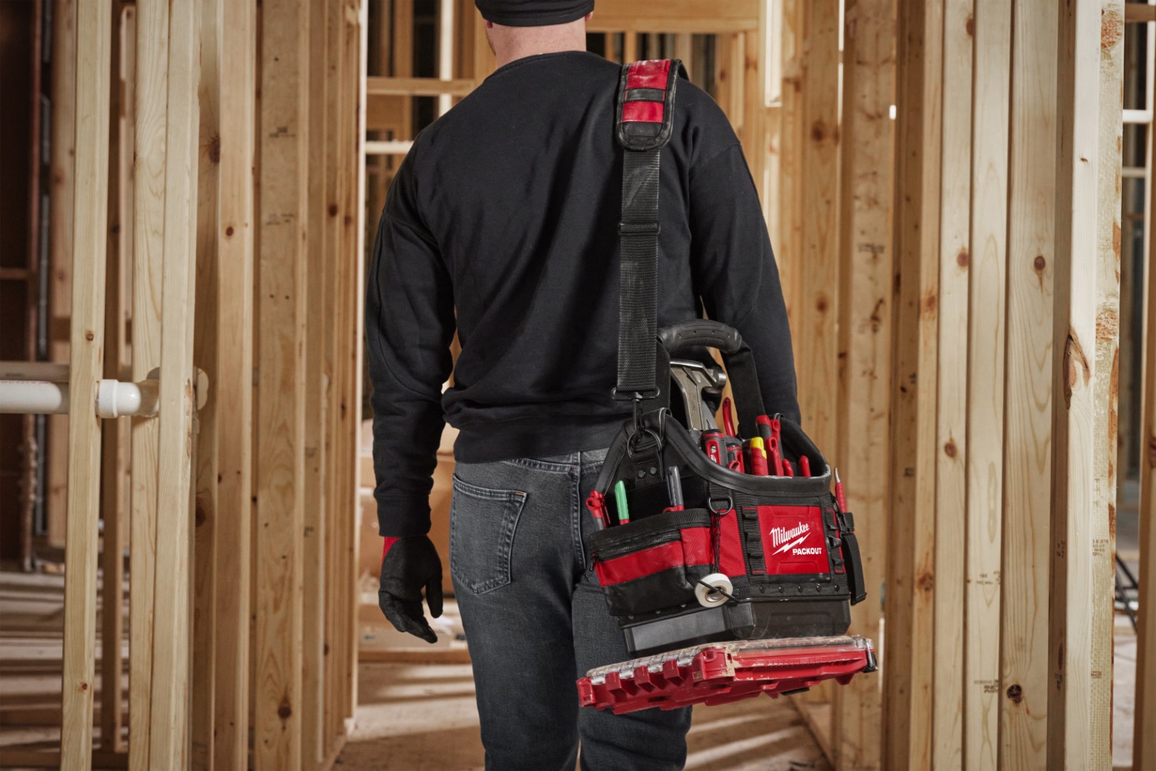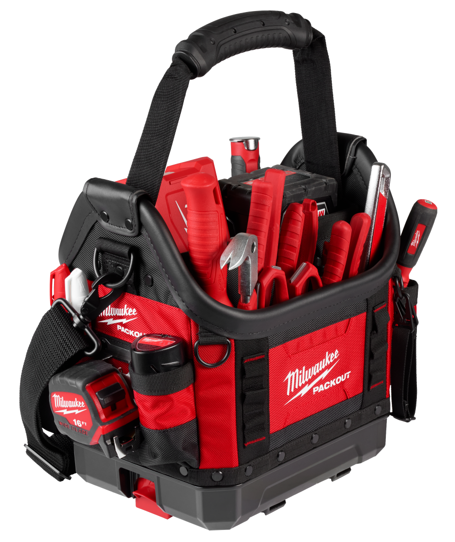 The impact-resistant molded base connects with other MILWAUKEE® PACKOUT™ system components via integrated locking cleats. Our 10" Structured Tote has all metal hardware, YKK zippers, and 35 pockets. The padded shoulder strap quickly and conveniently stores on the handle for maximum organization. Our PACKOUT™ Modular Storage System allows you to customize and build your own tool storage system to easily transport and organise your tools and accessories.