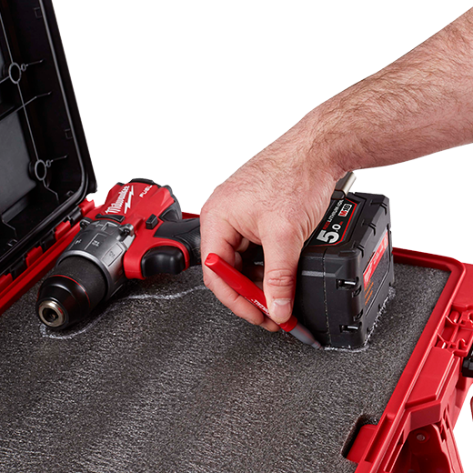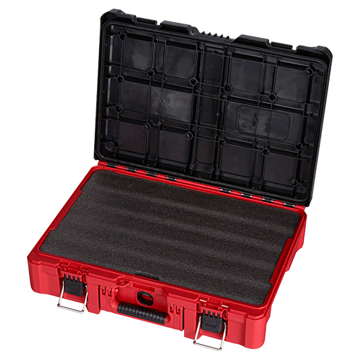 The Milwaukee PACKOUT™ tool box is constructed with impact resistant polymers and metal reinforced corners to provide up to 34kg of weight capacity and ultimate durability in harsh jobsite conditions. Supplied with a customisable foam insert for maximum organisation. Featuring an IP65 rated weather seal to keep out rain and jobsite debris. The Milwaukee PACKOUT™ tool box is the fully compatible with all Milwaukee PACKOUT™ modular storage products.