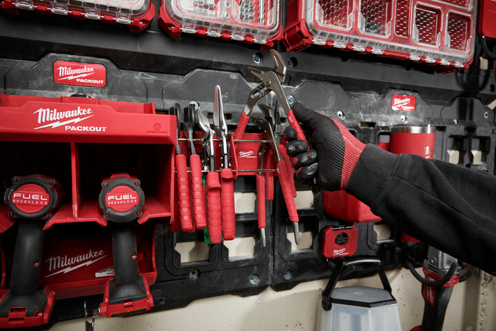 Our PACKOUT™ Tool Rack delivers the most secure mounting when paired with PACKOUT™ Wall Plates. The Tool Rack features quick access bars and allows you to maximise your space both in shop and in your household. This Tool Rack has a 9.07kg weight capacity and is optimised to store pliers, snips, and more. Additionally, our Tool Rack features connectivity with PACKOUT™ solutions allowing you to fully customise your shop