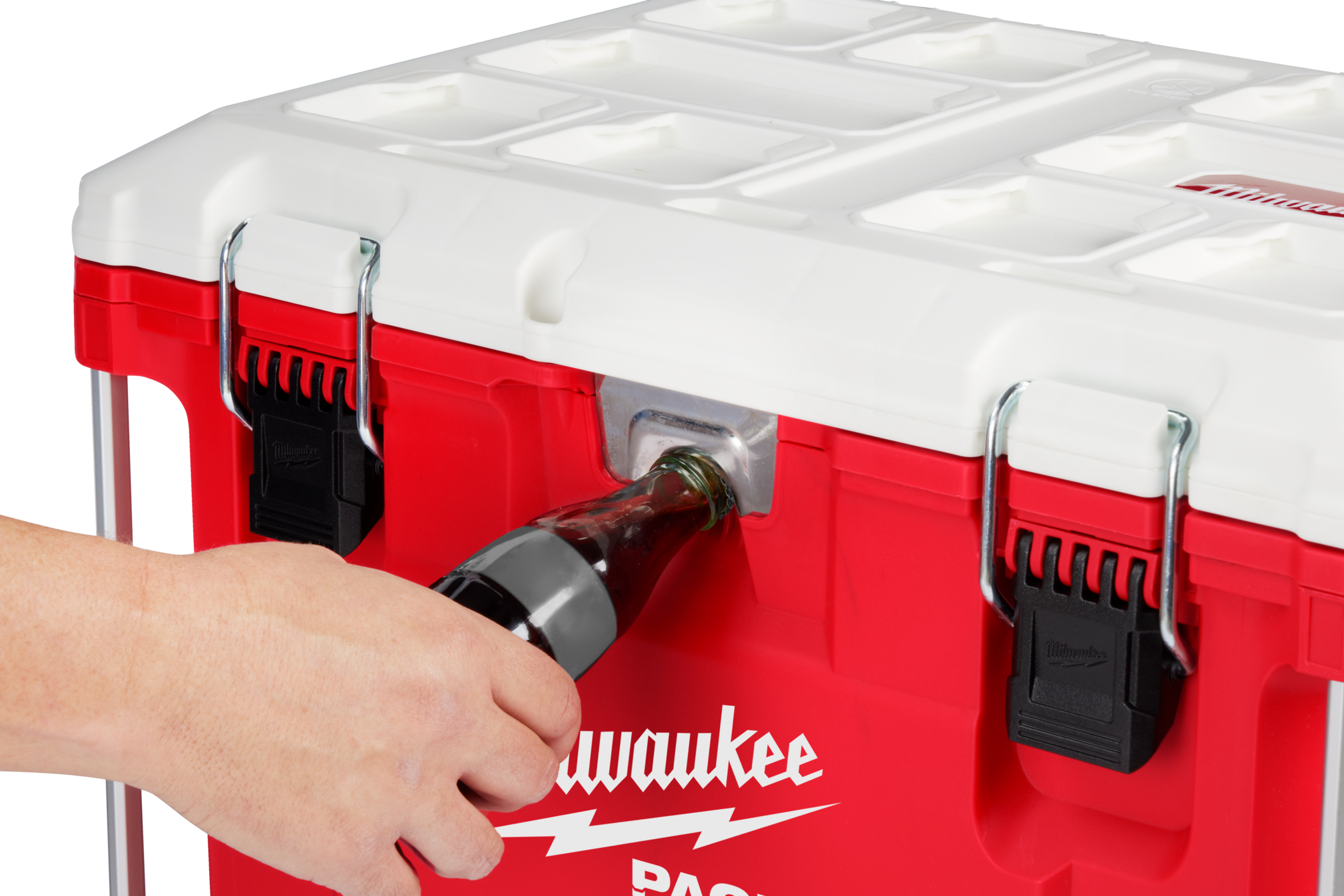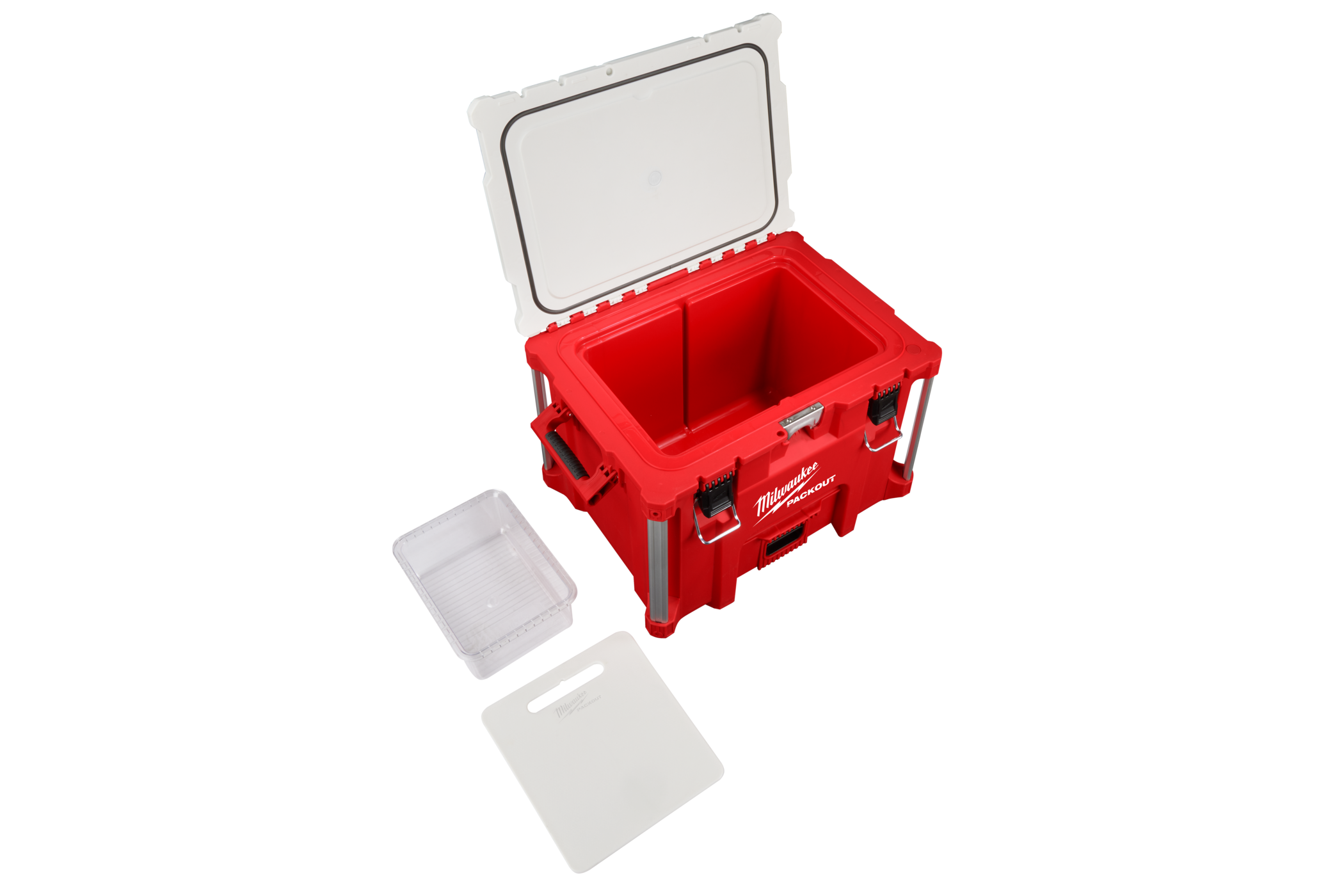 This cooler is IP65 rated to withstand harsh environments and jobsite debris. This cooler comes with an integrated bottle opener, interior storage tray, and a food-grade cutting board/divider for maximum versatility on and off the jobsite. The MILWAUKEE® PACKOUT™ Modular Storage System allows you to customise a storage system that easily transports and organises your tools and accessories.