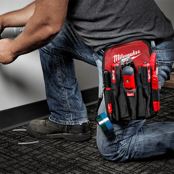 The Milwaukee Tool Utility Pouch is specifically designed to provide storage solutions for the essential tools needed throughout the work day. The Utility Pouch features 1680D ballistic material construction, which provides up to 5x longer life and riveted seams resulting in a Pouch that is up to 4x stronger. The Milwaukee Utility Pouch also features a quick attach belt loop that is designed to allow the pouch to quickly be attached or removed from a work belt. Lastly, the pouch has a tape strap designed for convenient access to electrical or pipe thread tape.