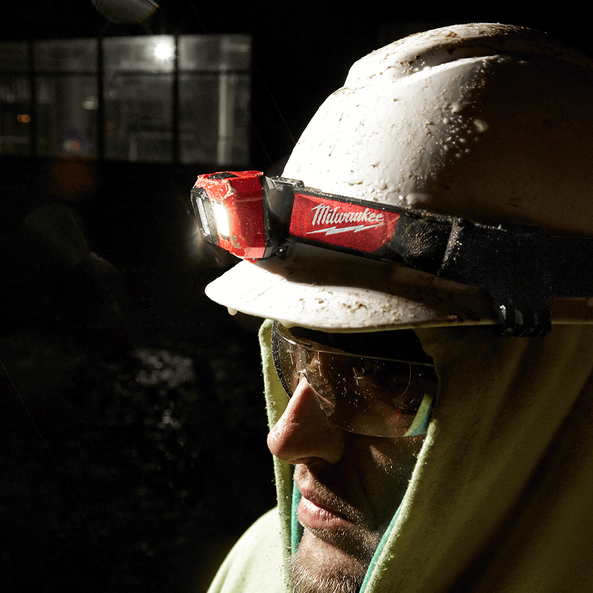 The MILWAUKEE® Spot/Flood headlamp light is equipped with a soft, sweat absorbing microfibre strap and forehead pad that provides users with all day comfort when worn on a bare head.