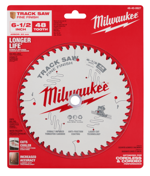 Milwaukee’s Track Saw Blades are designed to deliver accuracy and finish quality cuts in all Track Saw applications. The 48T General Purpose blade has optimised specs to ensure fast cuts and longer runtime for more productivity when paired with a cordless Track Saw.