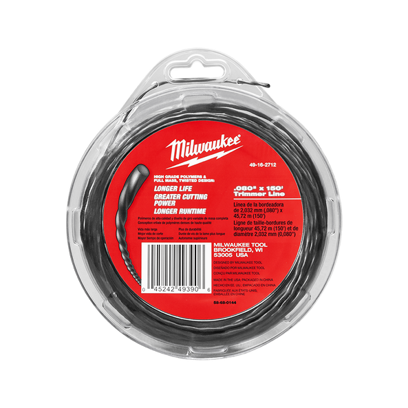 The MILWAUKEE 2mm trimmer line utilises high grade polymers and a full mass twisted design to provide longer life, greater cutting power and longer run-time.