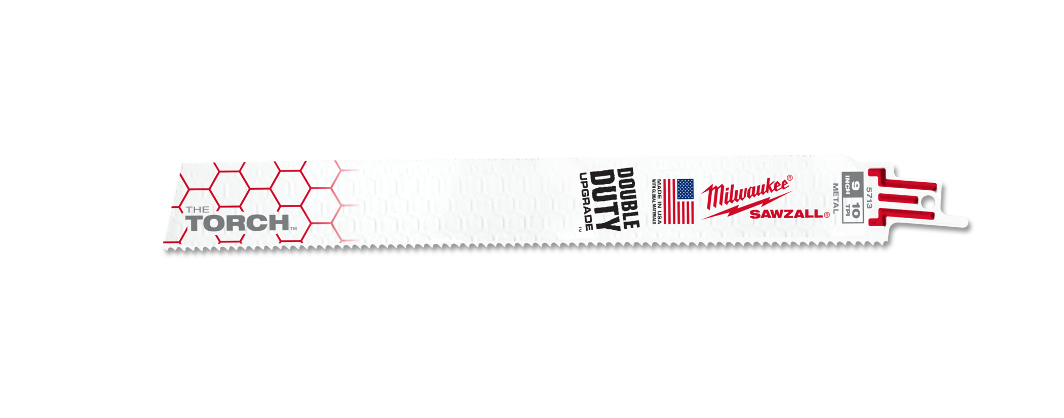 THE TORCH metal-cutting blades with the Double Duty Upgrade feature a tooth form optimized for the longest life and maximum durability. Tough Neck is engineered to protect against tang breakage and delivers the strongest SAWZALL blade tang on the market. Grid Iron features a stamped honeycomb pattern throughout the body of the blade that greatly increases the rigidity of the blade, making it the stiffest metal cutting SAWZALL blade on the market. These blades are ideal for making tough, straight cuts.