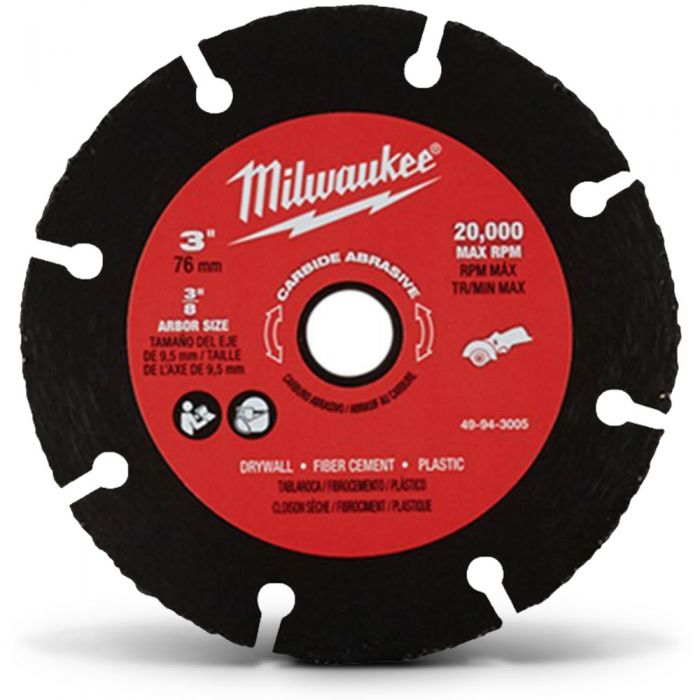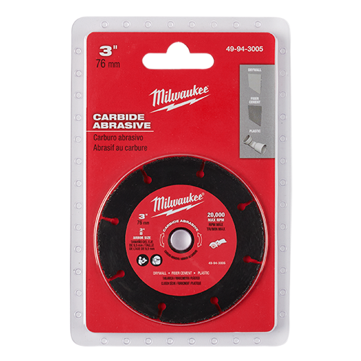 This is a 76mm Carbide Abrasive Blade intended to be a general-purpose blade paired with the Milwaukee M12 FUEL™ 3in Compact Cut Off Tool M12FCOT-0. Whether it’s drywall, cement backer board, PVC, plastics, etc. this blade is a unique solution that delivers the capability to cut a wide range of materials quickly and efficiently.