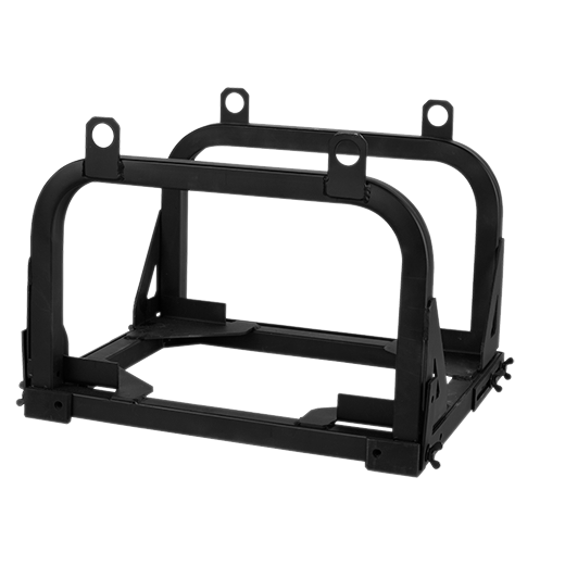 The symmetrical design allows the hanger to be used from either side and provides additional lifting points. The open frame design enables the user to open the pump battery door while still sitting in the hanger.