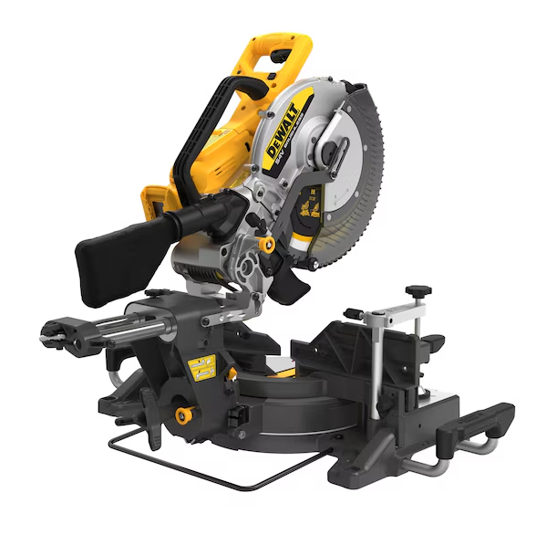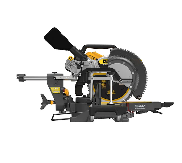 The DCS781 is the ultimate cordless Mitre Saw for first and second fix applications on the jobsite and can deliver up to 675 cuts in 83mm skirting board with one 9Ah XR Flexvolt battery.\nThe powerful 54V brushless motor offers a cutting capacity of 310 x 90mm, with a 165mm height capacity at the fence and the Regenerative Braking Technology extends runtime by redirecting lost energy back into the battery. Engineered for repeatable accuracy with dual horizontal rails and a stainless steel detent plate with common angles at 0, 15, 22.5, 31.6, 35.3 and 45 degrees.\nOther features include Wireless Tool Control to enable automatic stop start dust extraction when used with the DCV586M, XPS crosscut positioning system for the ultimate in accuracy and visibility with no calibration needed and 100mm extendable side handles for material support and increased portability on site.