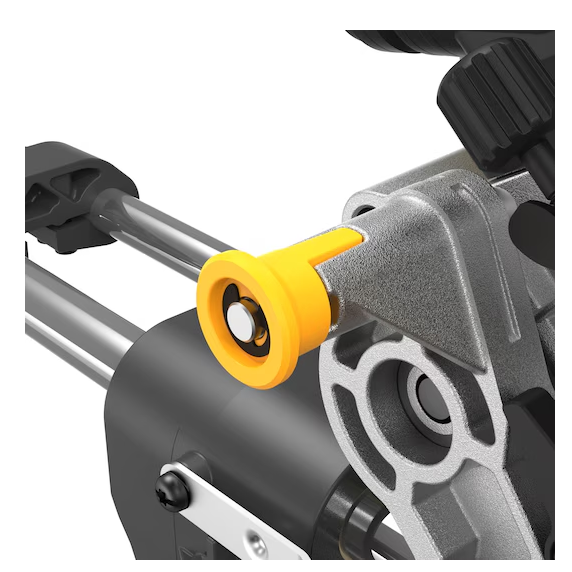 Cam action mitre lock function makes mitre setting faster and easier allowing the user to quickly adjust angles between 0° - 50° left and 0° - 60° right
