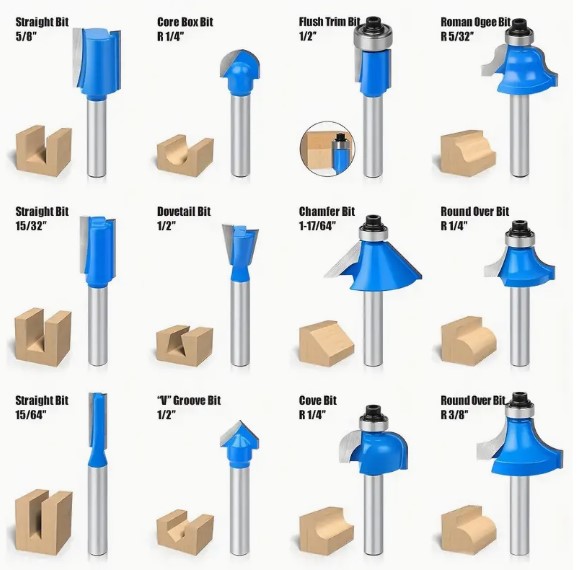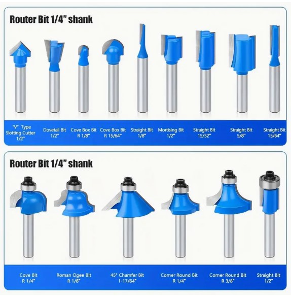 1/4" Shank, Woodworking Router Bits for Edge Trimming, Forming, and Grooving
