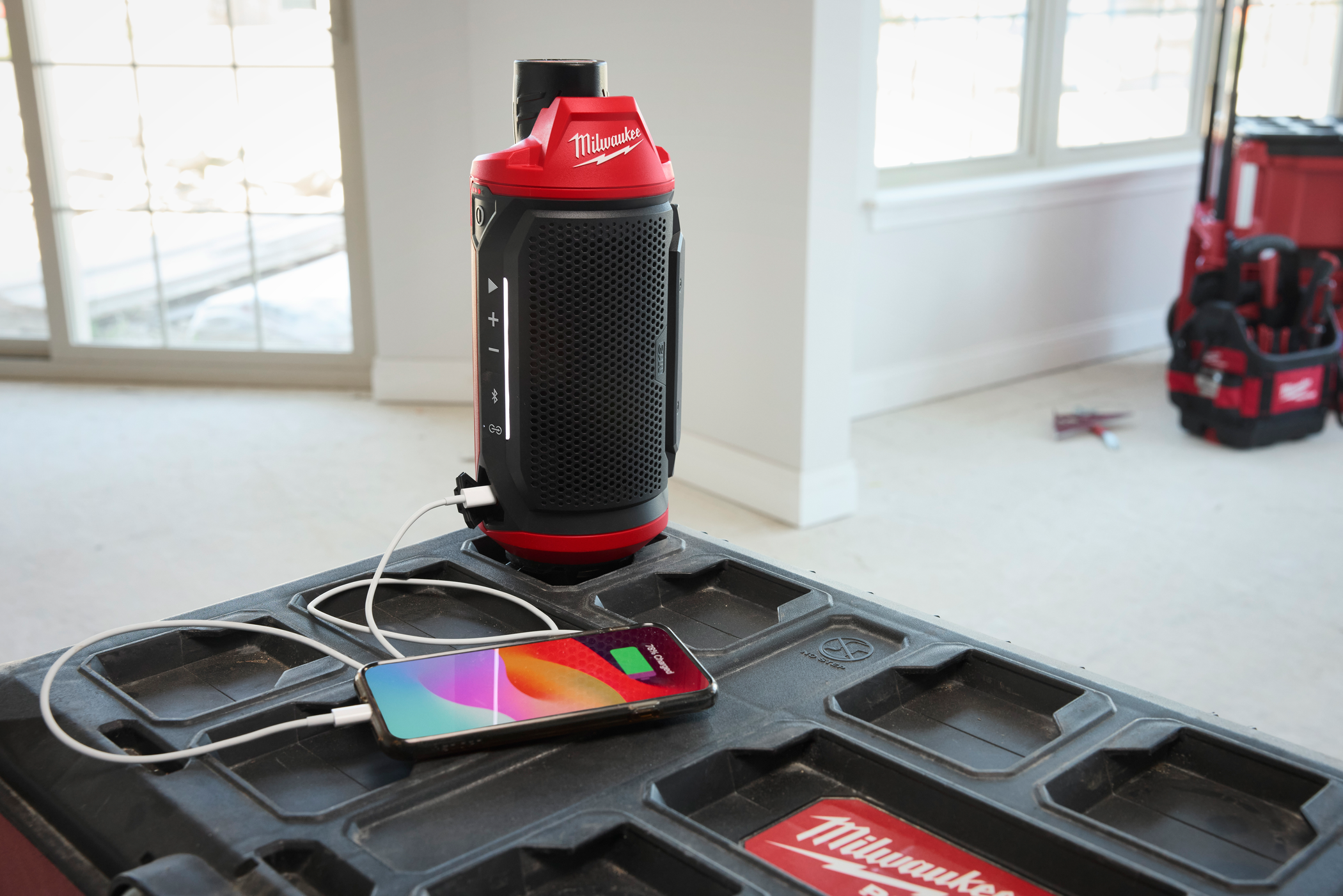 - AUDIO-LINK allows you to play music through multiple speakers by wirelessly daisy-chaining over 200 Milwaukee AUDIO-LINK compatible devices, creating a larger sound experience.