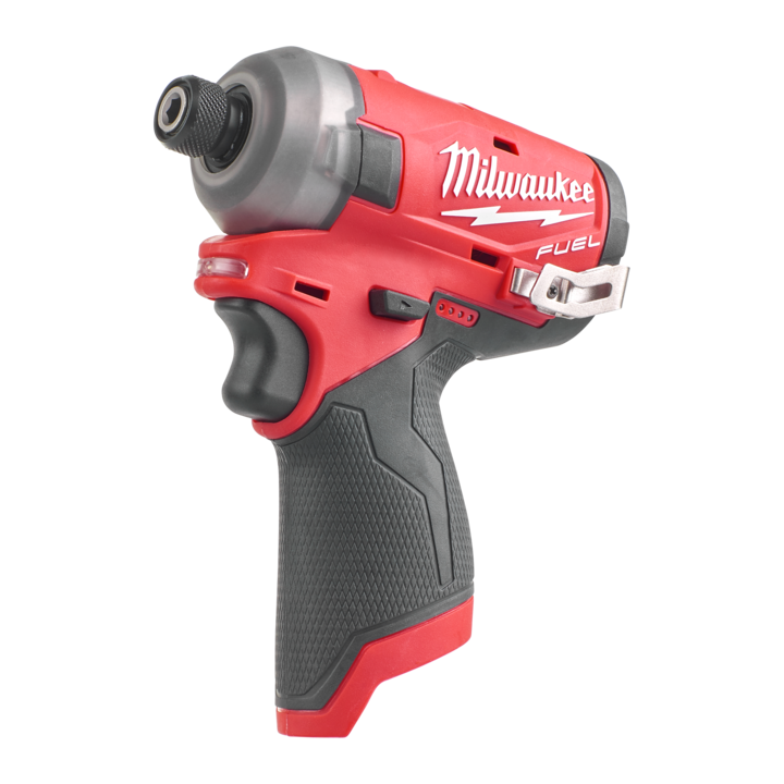 Our M12 FUEL SURGE ¼” Hex Hydraulic Driver is the industry's first 12-volt hydraulic impact driver. Featuring our FLUID-DRIVE Hydraulic Powertrain, the hydraulic impact will let you experience quiet operation with less vibration for smoother and faster driving speeds compared to standard impacts. The compact size of the tool and battery give you unmatched access in tight spaces and allows for easy transport on a tool belt and easy fitting into your job site tool bag. The POWERSTATE Brushless Motor delivers up to 0-3,200 RPM with constant power output to drive screws faster. Built-in REDLINK PLUS Intelligence is the most advanced electronic system on the market, preventing damage to your tool and battery caused by overloading or overheating. The cordless impact driver is compatible with all MILWAUKEE M12 REDLITHIUM-ION Compact Batteries or Extended Capacity Batteries, providing you with more work per charge and more work over the life of the pack. The impact driver's 4-Mode DRIVE CONTROL gives you greater control over output speed and power for greater versatility in a wide range of applications. Self-Tapping Screw Mode reduces walking when you are self-tapping screws as well as reduces overdriving, breaking and stripping out screws.