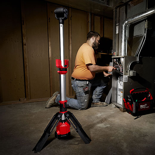 MORE PORTABLE. ALL-DAY OPERATION - The M12™ Stand Area Light has the lightest weight in its class and a 45% smaller footprint than M18™ Stand Lights that allows it to be easily carried and setup in the most confined spaces. The M12SAL-0 extends up to 172cm to provide 1,400 Lumens of TRUEVIEW™ High Definition Output on high mode and 700 Lumens on low mode. When powered by an M12™ REDLITHIUM™ 6.0Ah battery pack, it runs up to 10 hours on a single charge. After deployment, the M12SAL-0 is supported by impact-resistant, reinforced legs that form a compact base with a low center of gravity to help survive any jobsite.