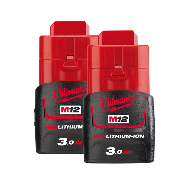 Milwaukee 12 Volt 3 Amp Red Lithium Ion Battery (Twin Pack)
