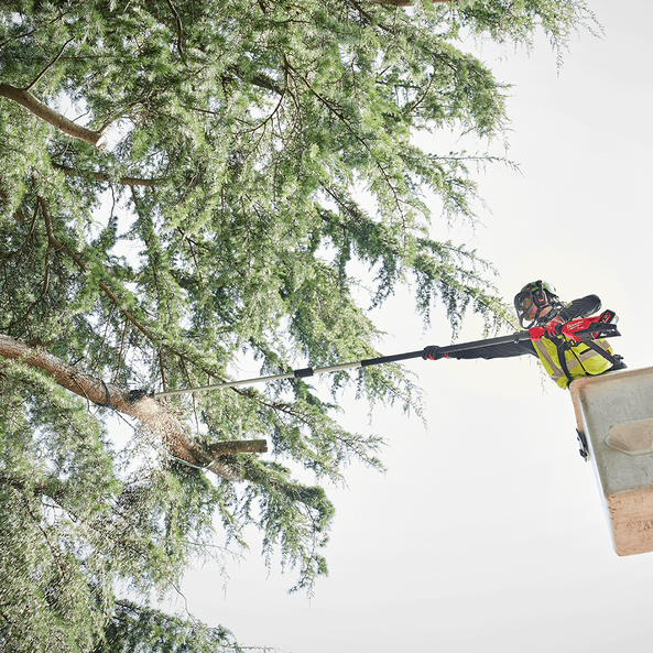 The M18 FUEL™ 12" (305mm) Telescoping Pole Saw is designed to meet the performance, durability, and ergonomic needs of the professional arborist, power utility linesman, and landscape maintenance professional. The Pole Saw’s POWERSTATE™ Brushless Motor™ delivers 1.8 kW peak power with an M18™ REDLITHIUM™ HIGH OUTPUT™12.0Ah battery (sold separately). M18 FUEL™ technology allows the Pole Saw to reach its full throttle 25 m/s chain speed in under 1 second, delivering fast cuts for maximum productivity. Eliminating headaches associated with petrol engines, such as pull starts, high noise levels and regular maintenance, this Pole Saw is optimised for use with M18™ REDLITHIUM™ HIGH OUTPUT™ batteries, which deliver best-in-class performance. REDLINK™ PLUS Intelligence enables full-circle communication between the tool and battery, providing users with ultimate levels of performance, protection, and productivity. The Pole Saw has a professionally demanded feature set, including a rigid, easy-to-adjust telescoping shaft, lightweight magnesium cutting head, robust branch hook, cutting sight line, captured bar nut, compact design for easy storage and transport, easy access chain tensioner, automatic oiler, and onboard scrench storage conveniently located within the bump guard.