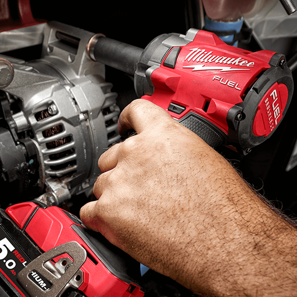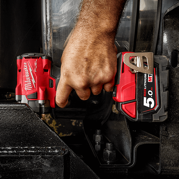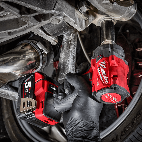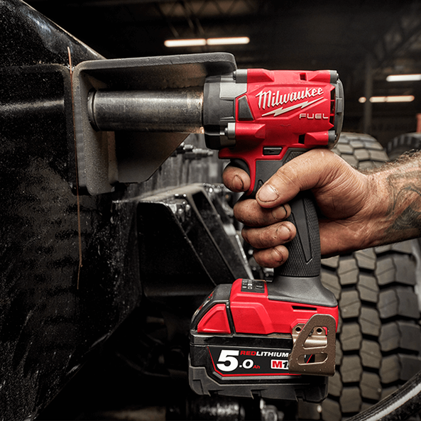 The M18 FUEL™ 1/2" Super Compact Impact Wrench with Pin Detent delivers maximum access in tight spaces as it’s only 124.5mm Length, up to 339 Nm of nut-busting torque, and maximum workspace visibility.