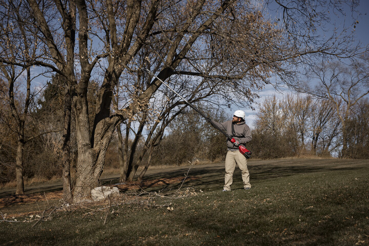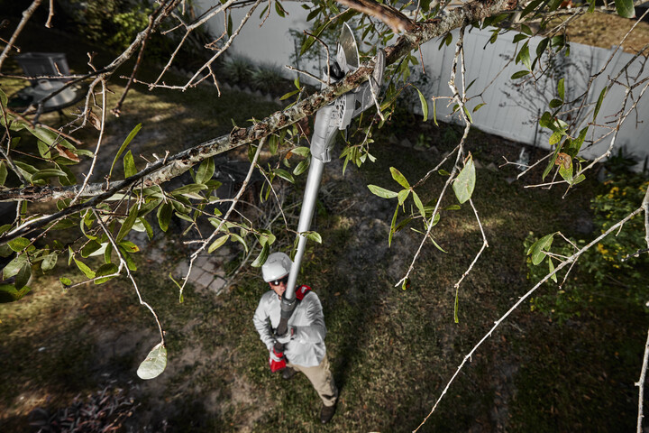 The M18™ Brushless Telescoping Pole Pruning Shears provides users with fast clean pruning and eliminates the frustrations of pulling a manual pole pruner.