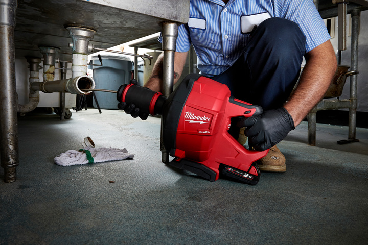 M18 FUEL™ Drain Snake with CABLE-DRIVE Locking Feed System represents the next level in performance for handheld machines, and is the first to bring brushless motor technology to the drain cleaning industry. The POWERSTATE™ Brushless Motor provides more clearing power than corded competitors for tough jobs through drain lines. REDLINK PLUS™ Intelligence ensures maximum performance under load and improves control throughout the entire process. The REDLITHIUM-ION™ battery pack powers through multiple jobs on a single charge, delivering cordless mobility, safety, and power supply to the drain cleaning industry. CABLE-DRIVE™ Locking Feed System maintains the selected feed speed, and its twist lock design auto-adjusts to all compatible cable sizes for the best cable grip when feeding and working the clog. M18™ FUEL™ Drain Snake has a fully enclosed drum to ensure the best protection and mess containment."