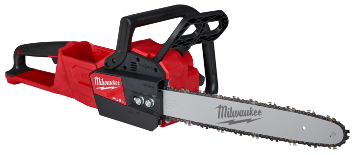 The Milwaukee® M18 FUEL™ 16" Chain saw delivers the power to cut hardwoods, faster cutting, and delivers up to 150 cuts per charge. The unit is designed to meet the performance, durability and ergonomic needs of professional landscape maintenance, power utility, and the installed M18 user. The POWERSTATE™ Brushless Motor maintains speed under heavy loads without bogging down. REDLINK PLUS™ intelligence ensures maximum performance and protection from overload, overheating and over discharge. The M18™ REDLITHIUM-ION™ High Output™ 12.0Ah battery delivers unmatched run-time in all applications. M18 FUEL™ technology allows the unit to reach full throttle in under 1 second providing ultimate control and productivity.