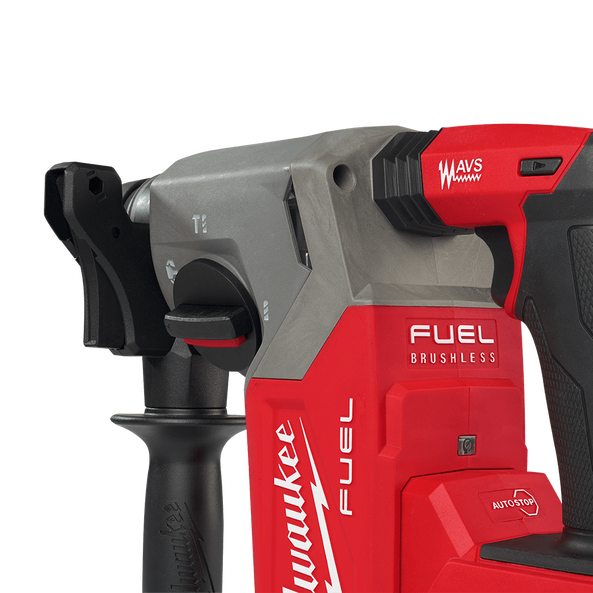 The MILWAUKEE® M18 FUEL™ 26 mm SDS Plus Rotary Hammer includes AUTOSTOP™ Kickback Control for maximum control and enhanced safety, with the tool sensing a bind-up situation when users are drilling in rebar or hard aggregate and stopping over-rotation, without the need for the user to release the trigger, indicated by the AUTOSTOP™ Indicator LED.
